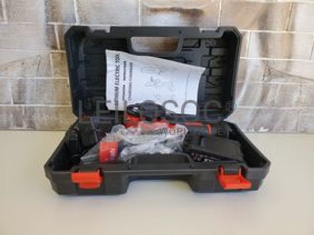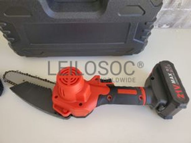 Motosserra elétrica com lâmina de 6 polegadas, com duas baterias incluídas, duas correntes de corte, carregador incluído e chaves como acessórios.