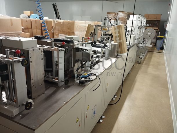 Linha de produção automática de máscaras faciais da marca "ACOS GRAF", modelo "FF2" com o n.º de série 26210206, ano 2021.
