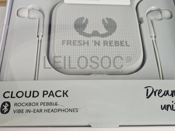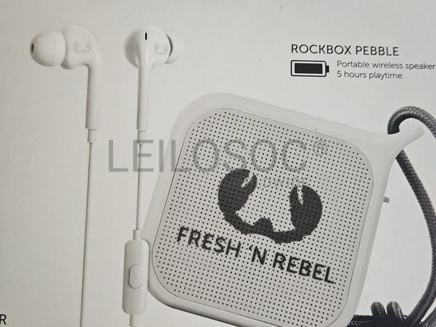 Pack de coluna Bluetooth sem fios + auriculares, da marca Fresh ' N Rebel, de cor cinzenta.
