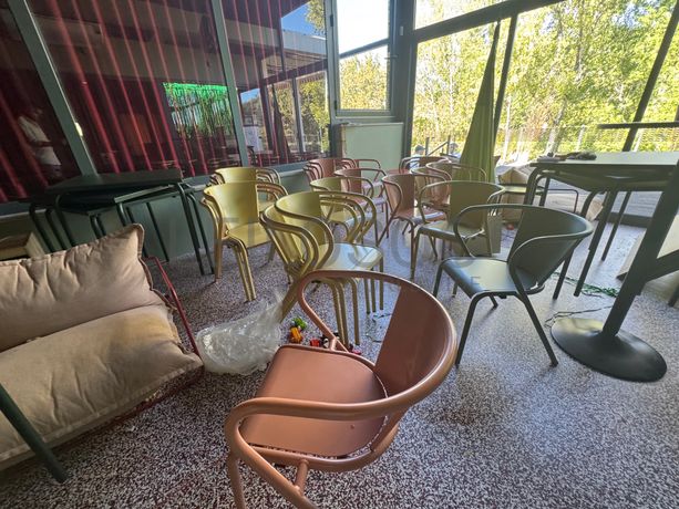 - 6 Mesas redondas, 3 altas e 3 pequenas;