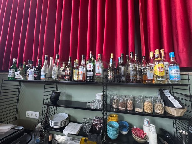 - Diversas garrafas de bebidas brancas - abertas - potencialmente para uso decorativo.