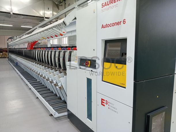 • Bobinadeira automática da marca “SAURER SCHLAFHORST~", modelo "AUTOCONER 6”, do ano de 2016, com 60 fusos;