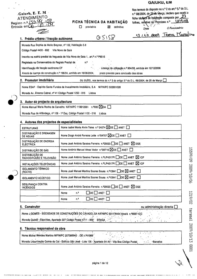- Licença de Utilização nº 964/2006;