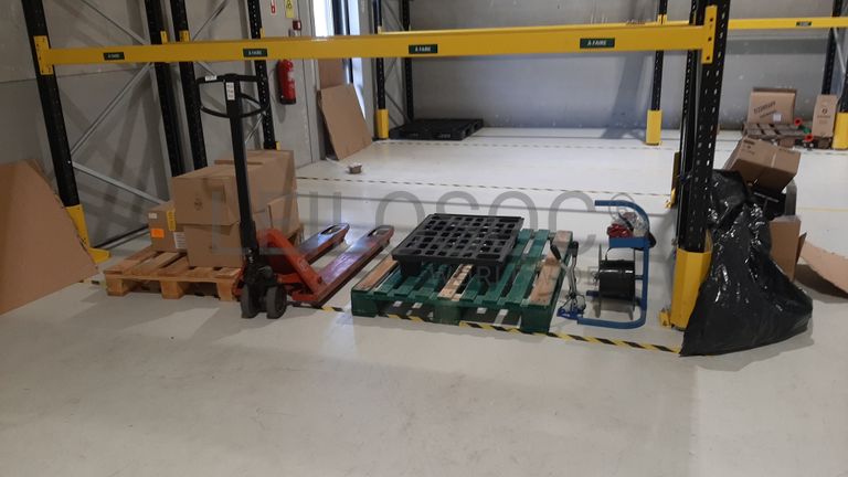 Empilhador · Porta paletes · Máquina de cintar