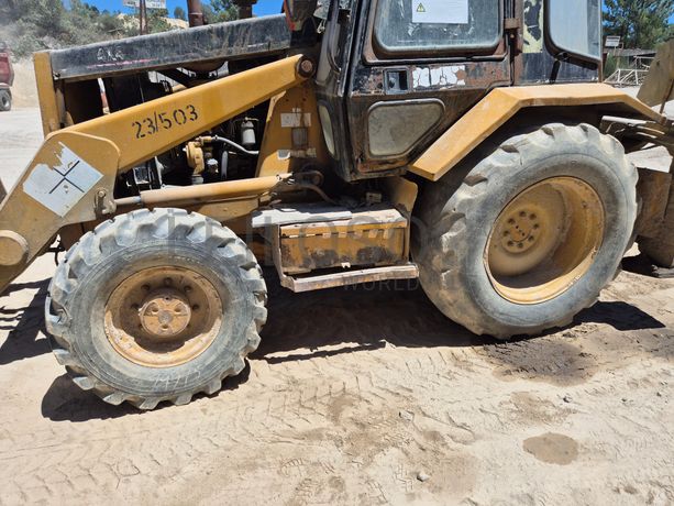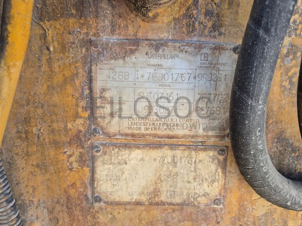 Conj. Ind. Pá e Retro de Pneus da marca CATERPILLAR, modelo 428 B, com o número de série 7EJ01767 do ano 1993 com cerca de 19777 horas. ÁREA: Agregados.