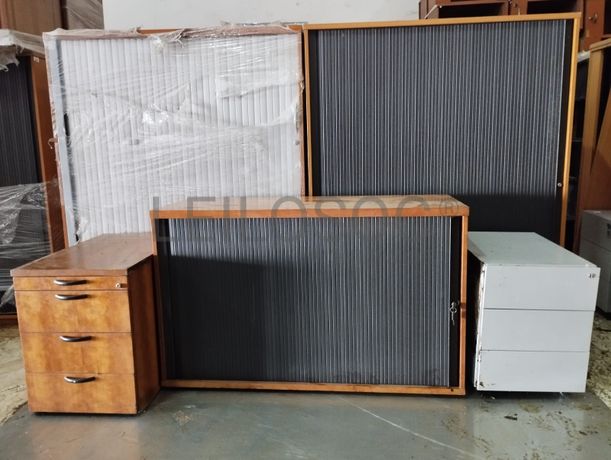 Três armários de portas móveis e dois módulos de gavetas