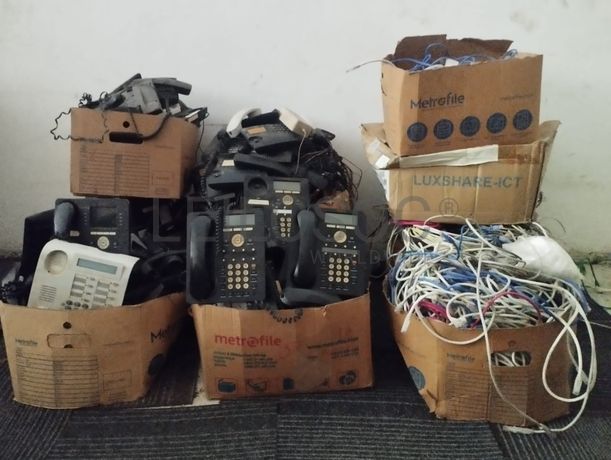 Cerca de cento dez telefones fixos e doze caixas de cabos de rede(Ethernet)