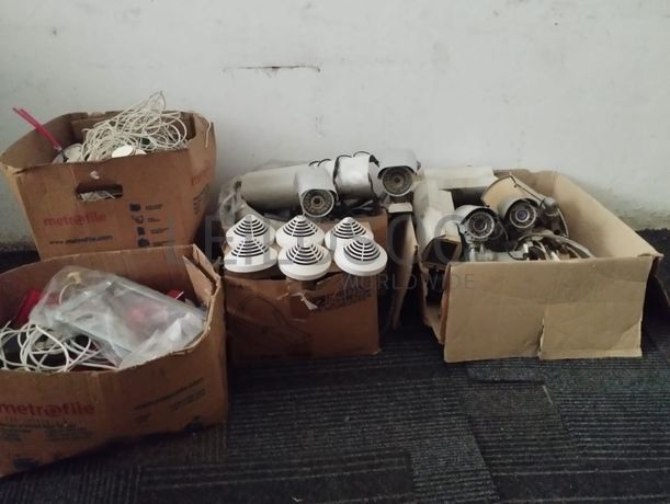 Vinte cinco Câmara de segurança/vigilância residencial ou de escritório é um modulo antigo não digital e sessenta e seis detetor de fumo(dispositivo para deteção precoce de incêndios
