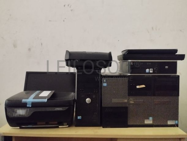 Uma impressora marca HP, dois PC's marca Dell e três caixas de PC'S, dois Scâneres marca Cânon e Epson V37, cinco monitores marca Dell e Phillips