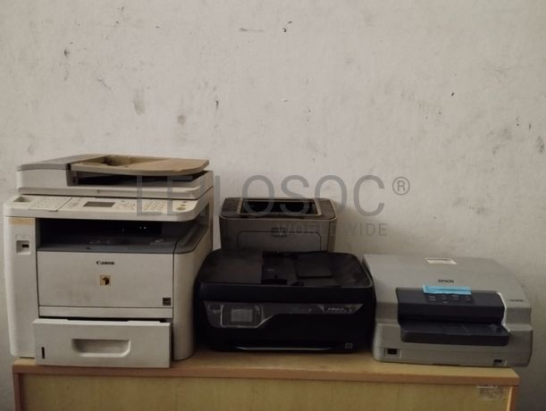 Três impressoras marca Epson, HP e Canon