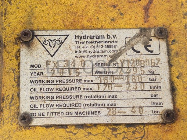 Martelo Hidráulico da marca Hydraram p/Escav. 25 a 40 T, com o número de série Y120B067, modelo FX 340 do ano 2015. ÁREA: Agregados.