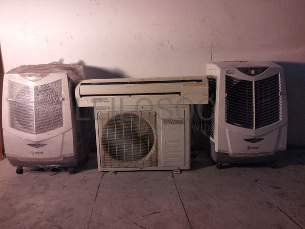 Um Ar condicionado marca Super General e três Ar condicionados móveis marca Icon sem compressores