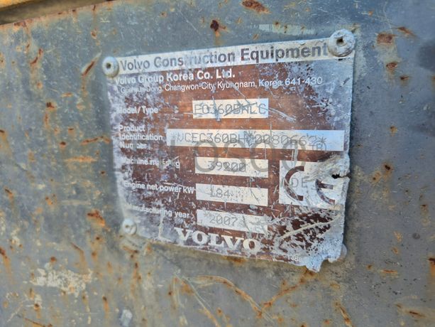 Escavadora de Rastos 35 T da marca VOLVO, modelo EC360B NLC, com o número de série 80662 do ano 2007, com cerca de 22490 horas. ÁREA: Agregados.