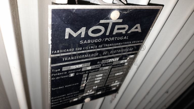 Transformador MOTRA 160KVA/10KV, com o número de série 27459 do ano 1988. ÁREA: DEQ.