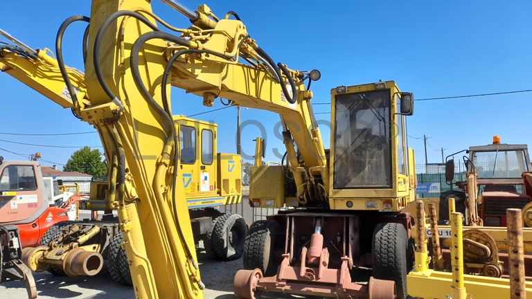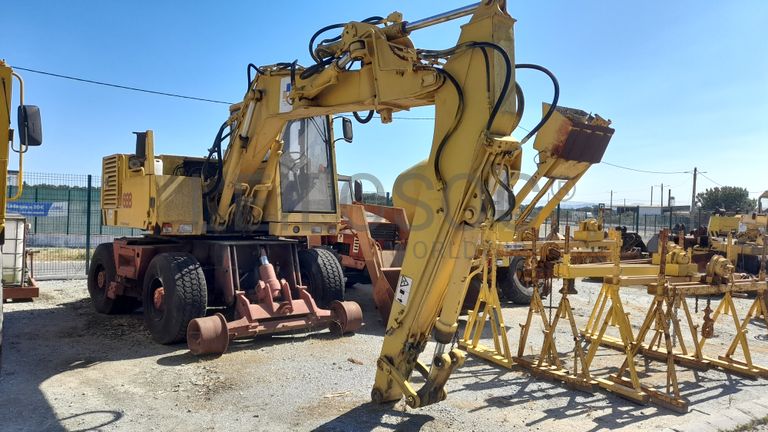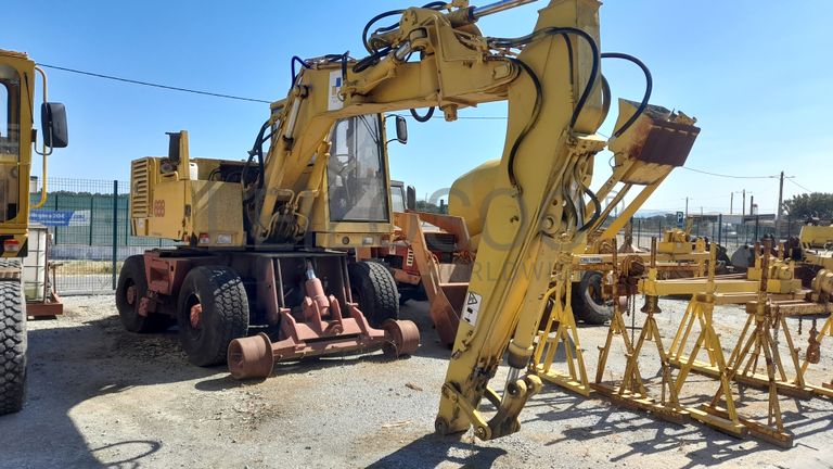 Escavadora Giratória de Pneus Rail-Route da marca POCLAIN, modelo 688 PRR, matrícula 33-NT-55 do ano 1991, com cerca de 3980 horas.