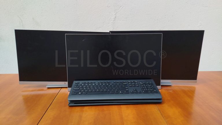 Três monitores e três teclados