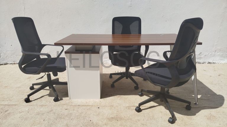 Uma secretária e três cadeiras giratórias