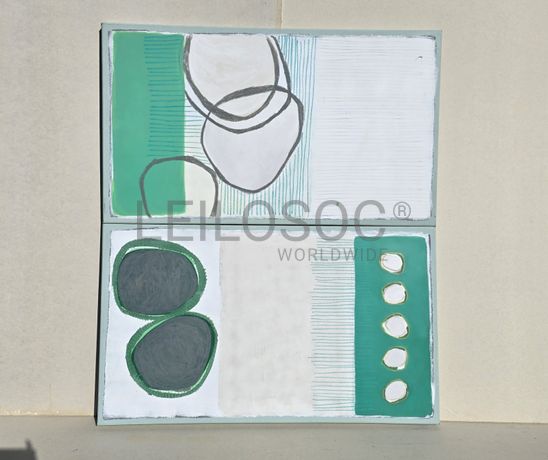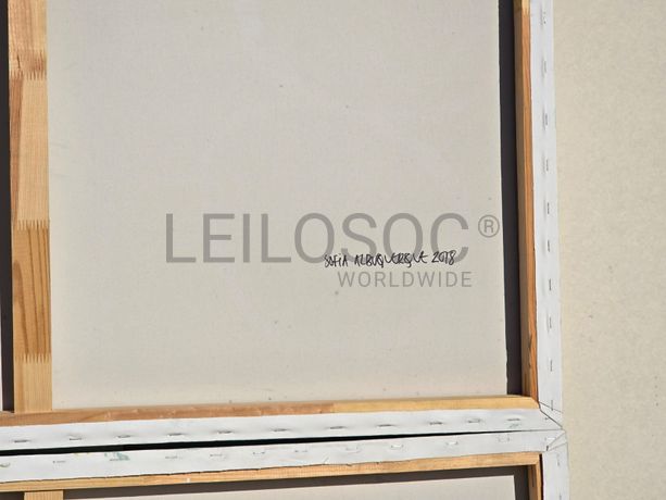 Conjunto de duas telas pintadas à mão, com assinatura de autora, estrutura de madeira, de 120x70 centímetros.