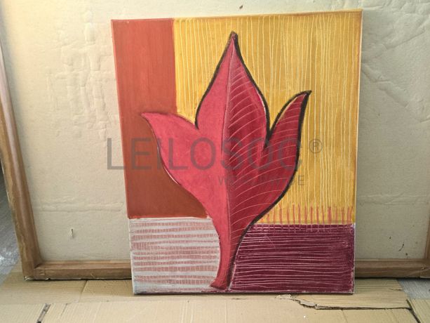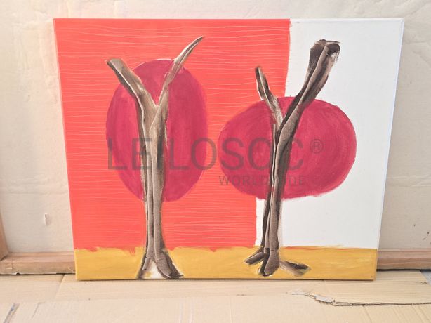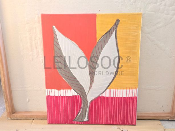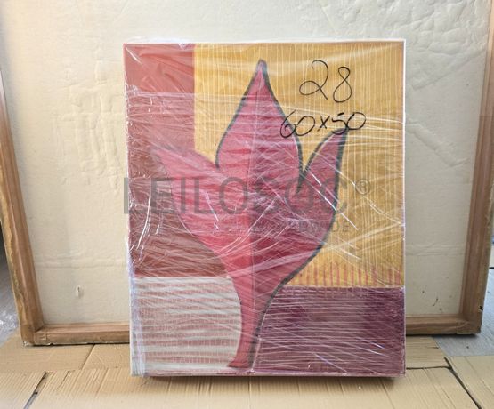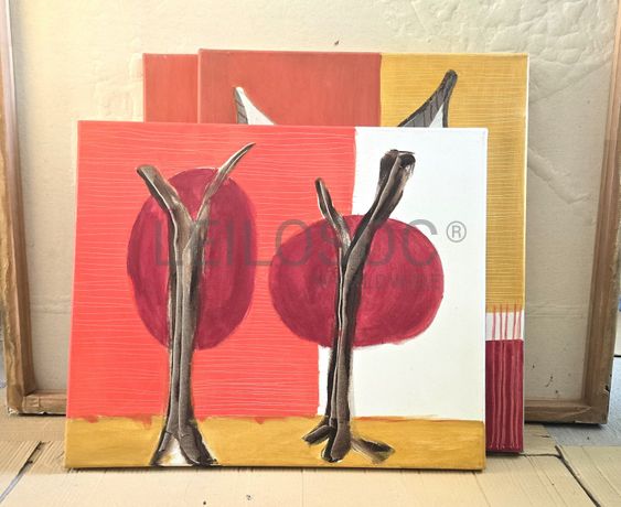 Conjunto de três telas pintadas à mão, com estrutura de madeira, de 40x30 centímetros.