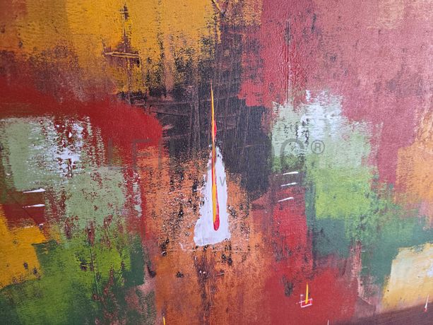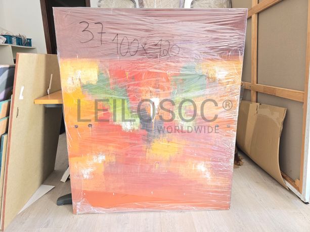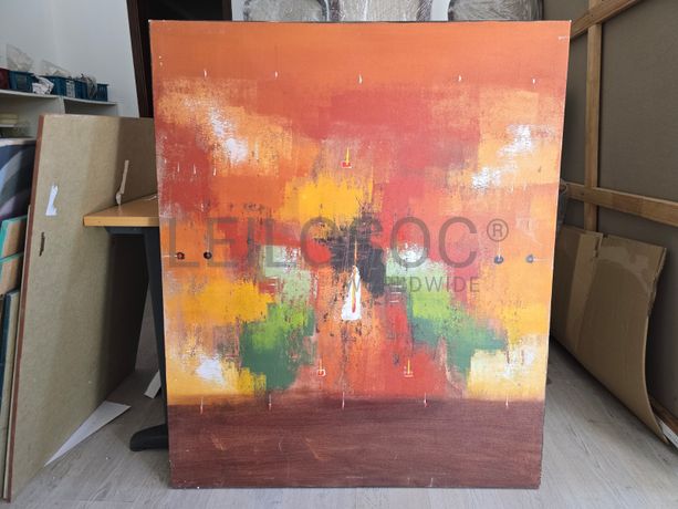 Tela pintada à mão, com estrutura de madeira, de 120x100 centímetros.