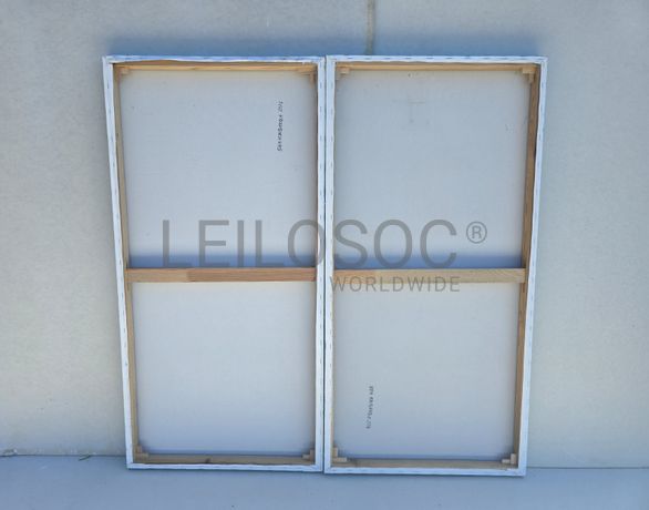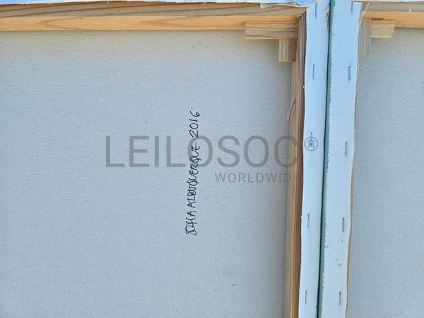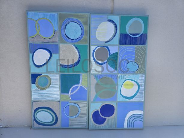 Conjunto de duas telas pintadas à mão, com assinatura de autora, estrutura de madeira, de 120x60 centímetros.