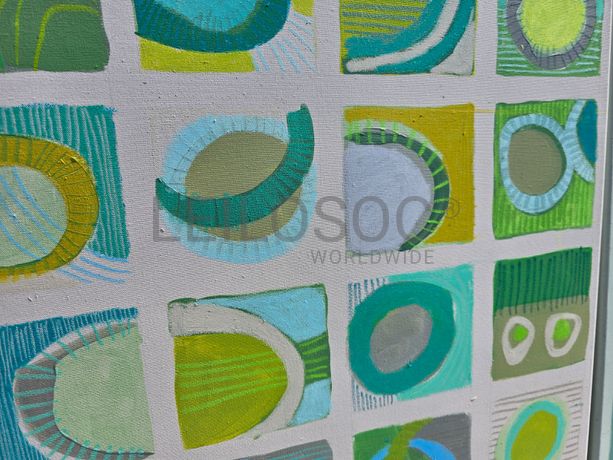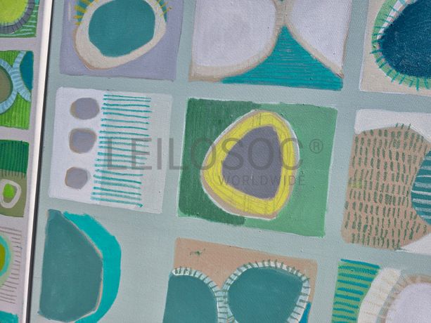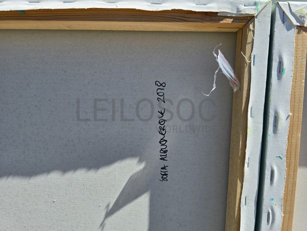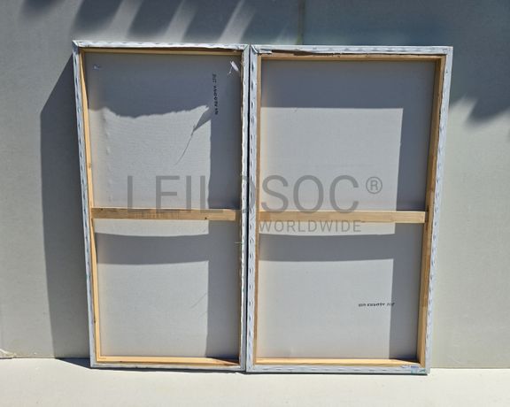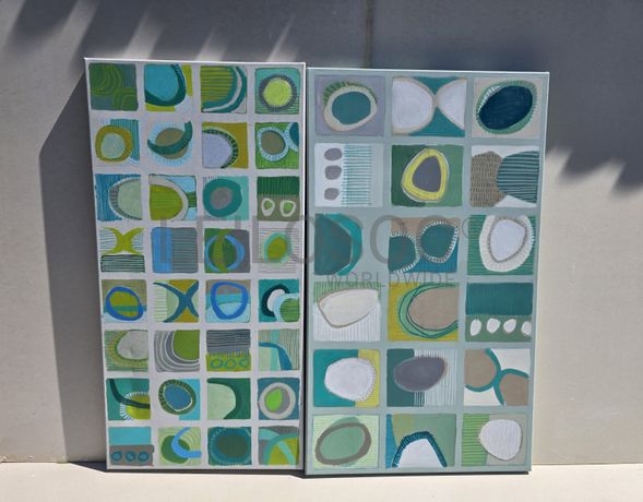 Conjunto de duas telas pintadas à mão, com assinatura de autora, estrutura de madeira, de 120x70 e 120x60 centímetros.