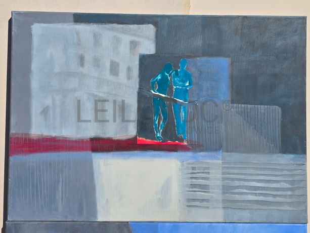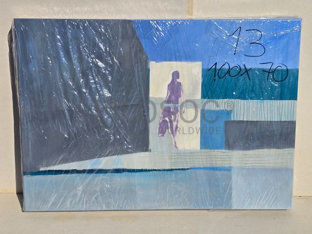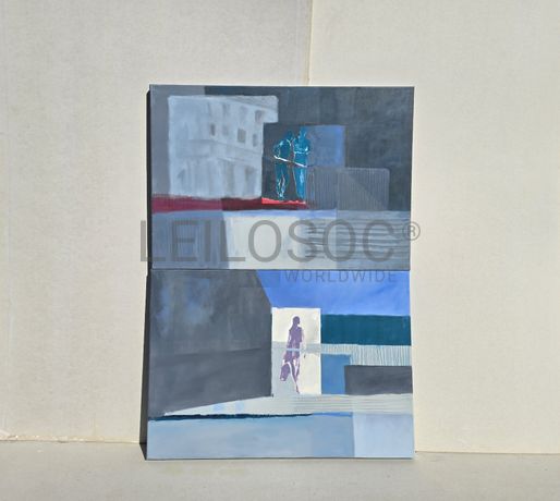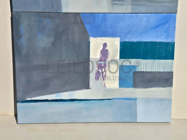 Conjunto de duas telas pintadas à mão, com assinatura de autora, estrutura de madeira, de 100x70 centímetros.