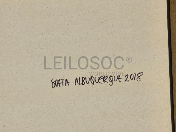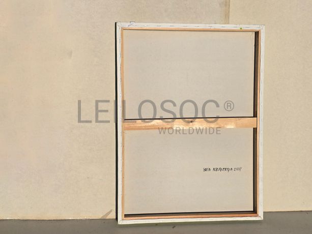 Tela pintada à mão, com assinatura de autora, estrutura de madeira, de 80x60 centímetros.