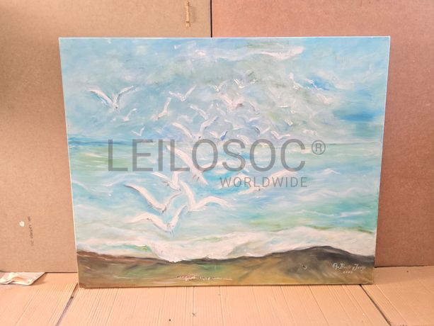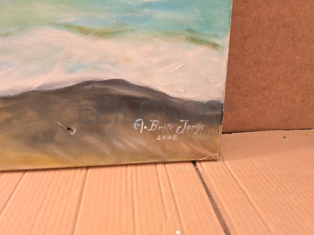 Tela pintada à mão, com assinatura de autor, estrutura de madeira, de 80x65 centímetros.