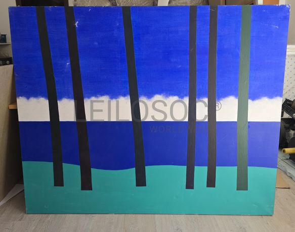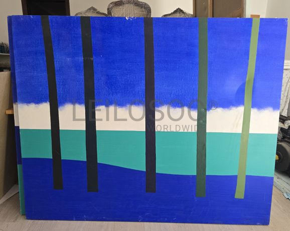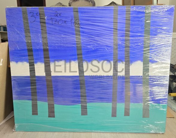 Conjunto de duas telas pintadas à mão, com assinatura de autor, estrutura de madeira, de 162x130 centímetros.