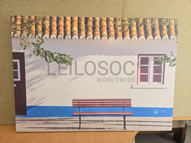Tela de motivo regional, de 70cm de comprimento e de 50cm de altura, com estrutura em madeira.