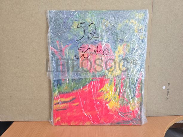 Tela pintada à mão, com assinatura de autor, estrutura de madeira, de 50x40 centímetros.