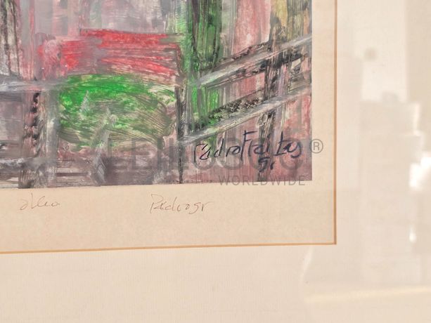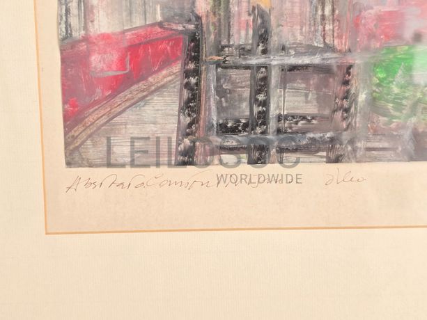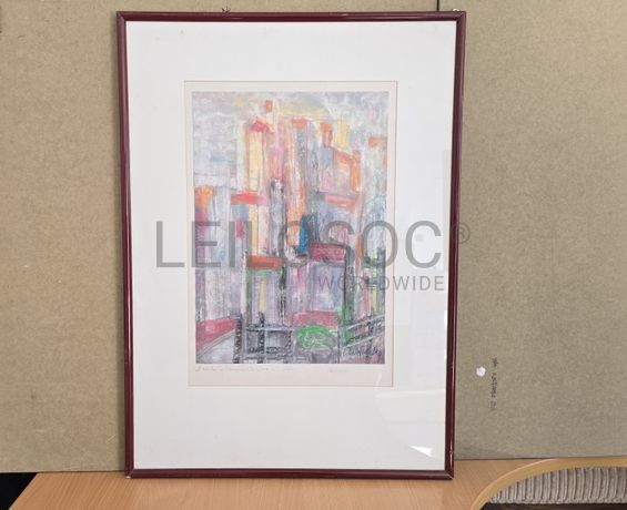 Pintura a óleo, abstrata, com assinatura de autor, em moldura de 72x51 centímetros.