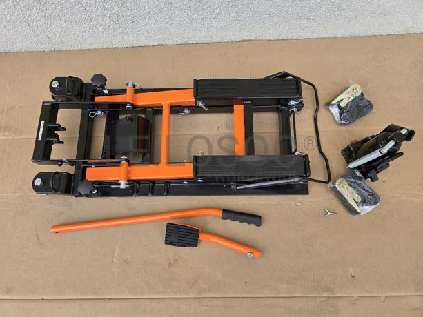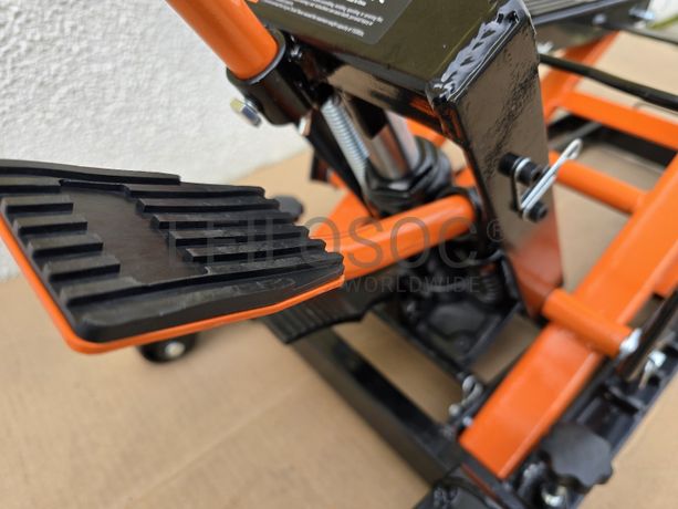Macaco hidráulico em aço, compatível com quase todos os modelos de motas, com pega longa, pedal de elevação, capacidade até 680kg, bomba hidráulica de alta qualidade com faixa de elevação de 12 a 40 cm,
