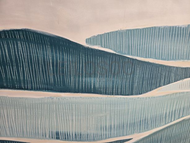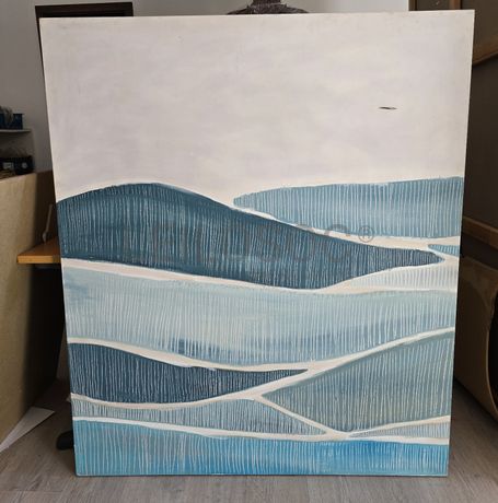 Conjunto de duas telas pintadas à mão, com assinatura de autora, estrutura de madeira, de 120x140 centímetros.