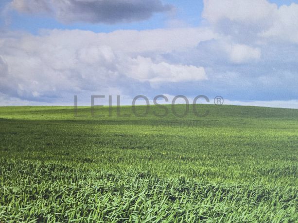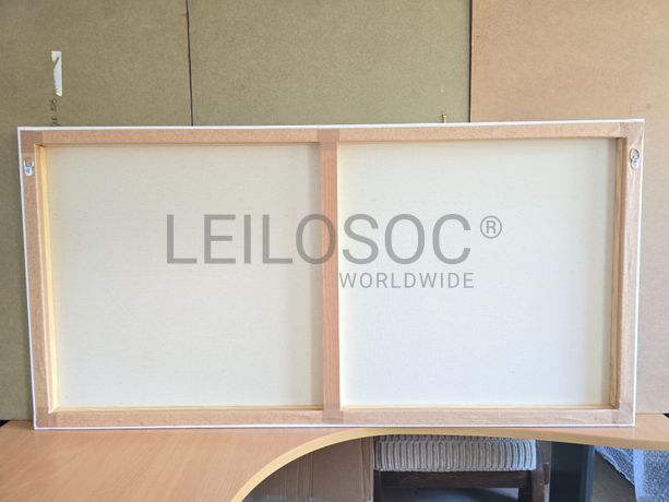 Tela de motivo natureza, de 140cm de comprimento e de 70cm de altura, com estrutura em madeira.