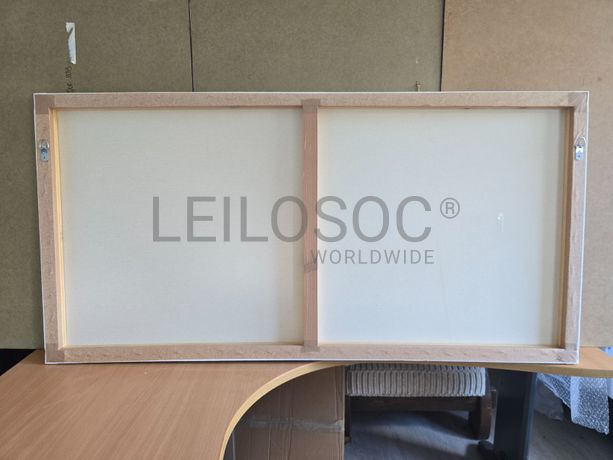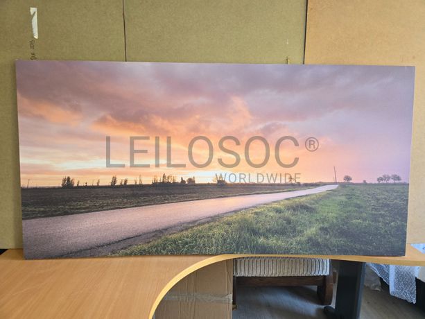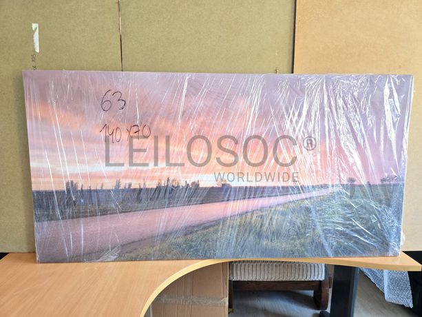 Tela de motivo natureza, de 140cm de comprimento e de 70cm de altura, com estrutura em madeira.