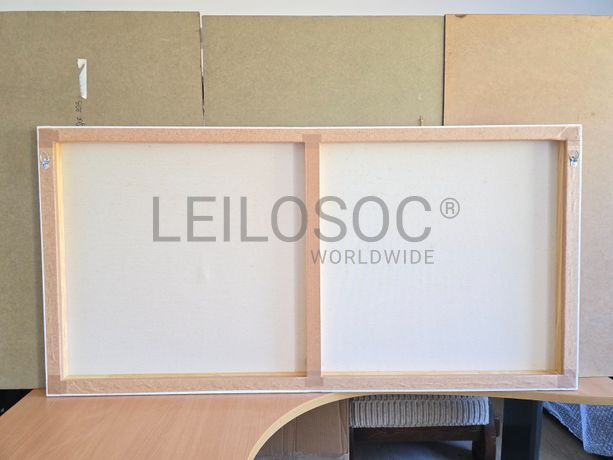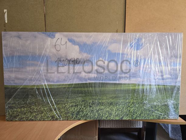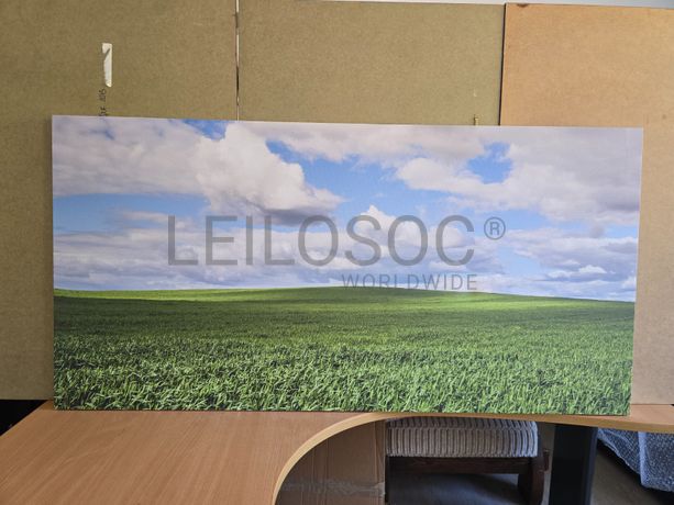 Tela de motivo natureza, de 140cm de comprimento e de 70cm de altura, com estrutura em madeira.