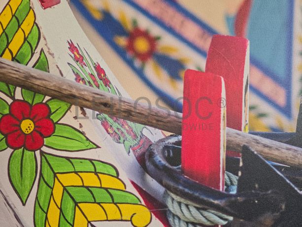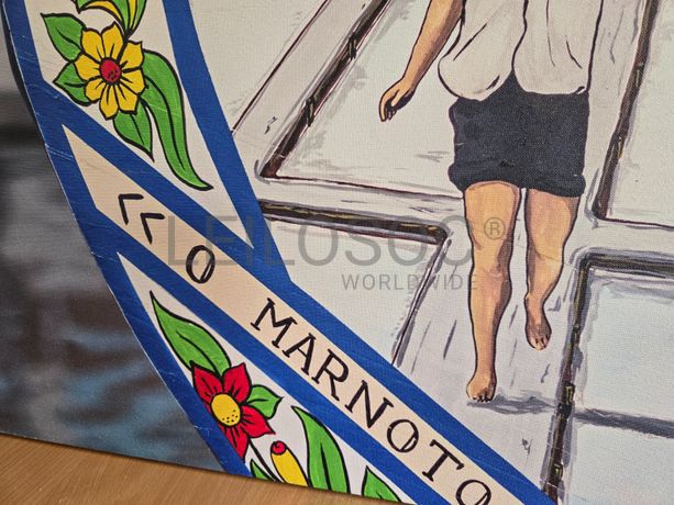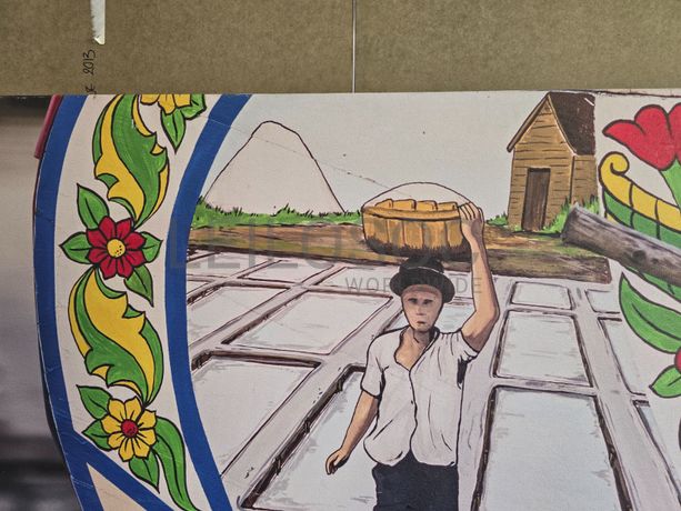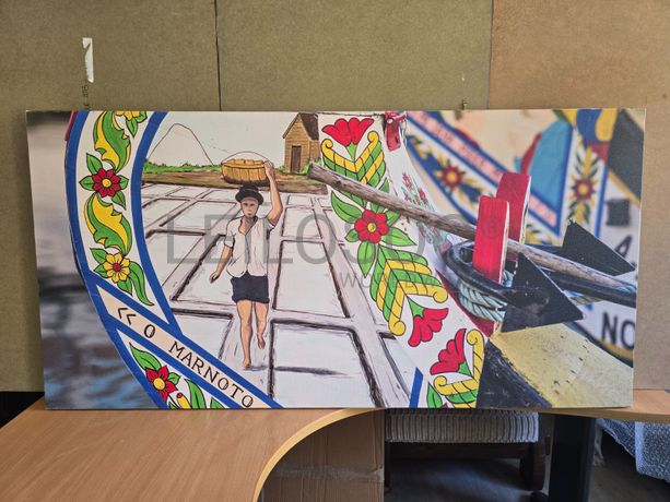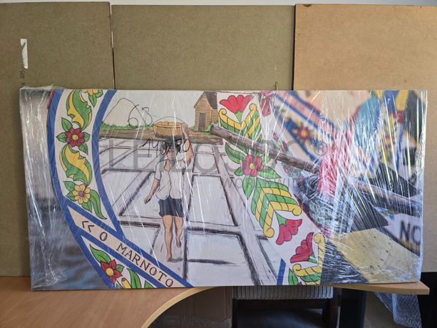 Tela de motivo natureza, de 140cm de comprimento e de 70cm de altura, com estrutura em madeira.