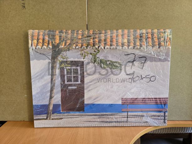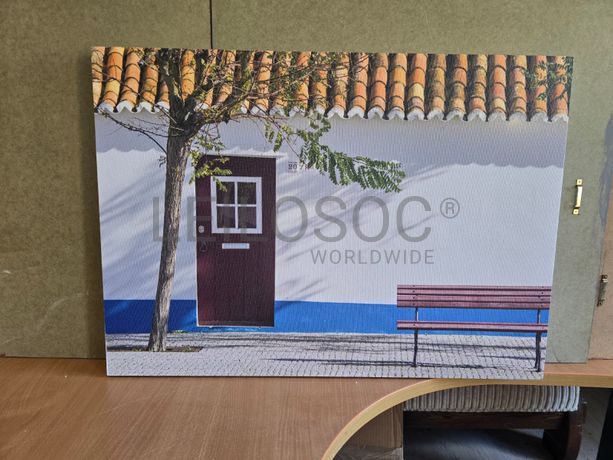 Tela de motivo regional, de 70cm de comprimento e de 50cm de altura, com estrutura em madeira.