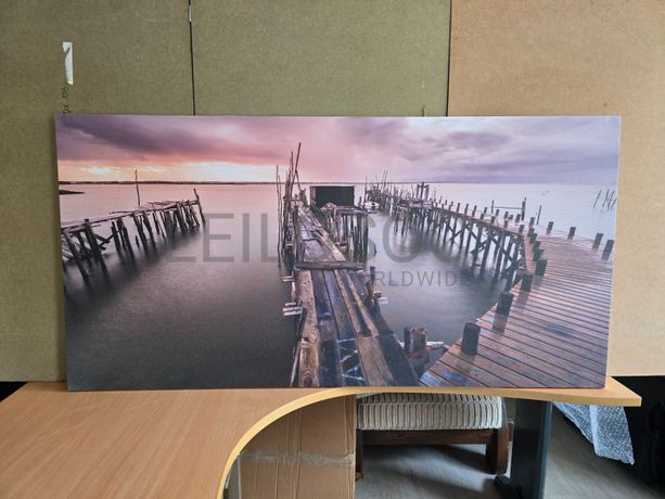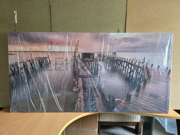 Tela de motivo regional, de 140cm de comprimento e de 70cm de altura, com estrutura em madeira.