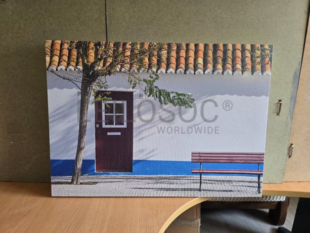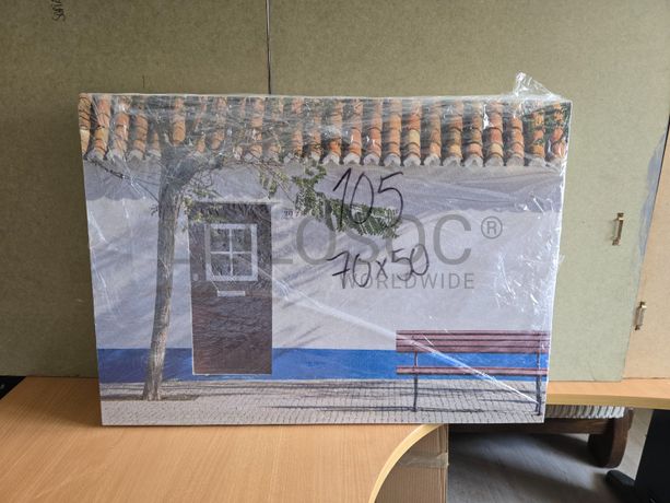Tela de motivo regional, de 70cm de comprimento e de 50cm de altura, com estrutura em madeira.