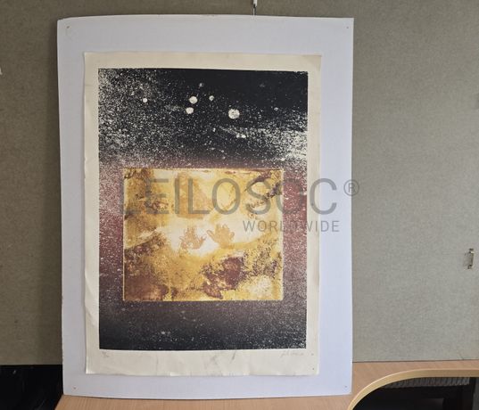Conjunto de sete pinturas, com assinatura de diversos artistas, de 90x70 centímetros.